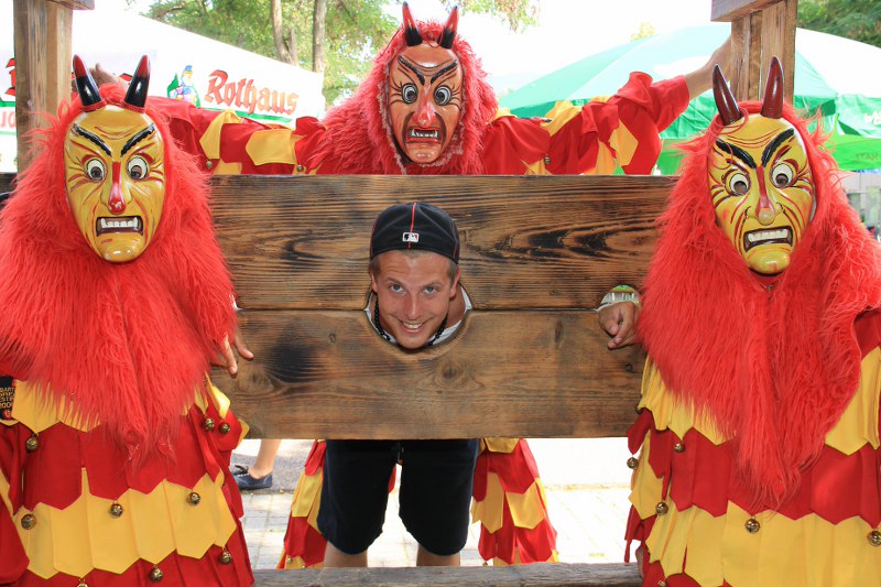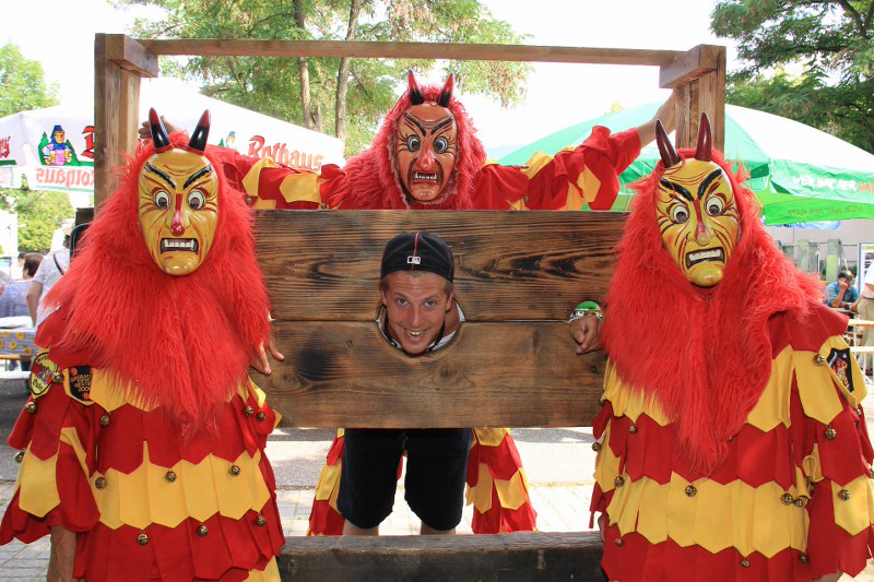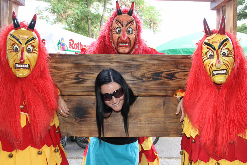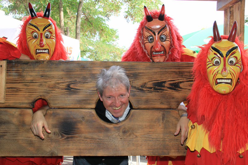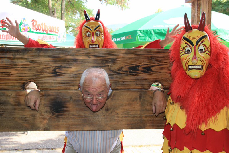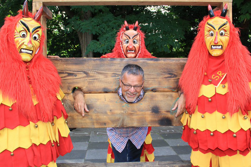 Wer nicht hören will.. Die Mitglieder der Karnevalsgruppe "Fürig Barthel" stellen jeden Spitzbub an den Pranger.